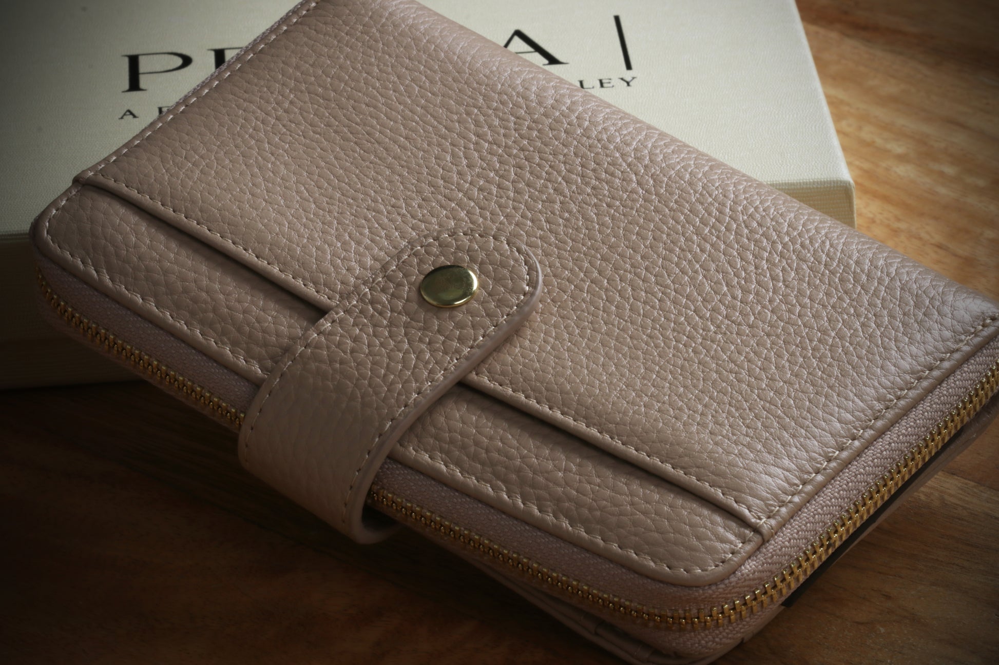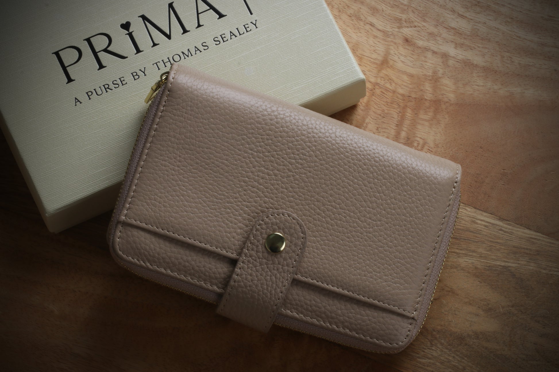 A signed card appears impossibly inside the purse in a way that feels logical and unforced.